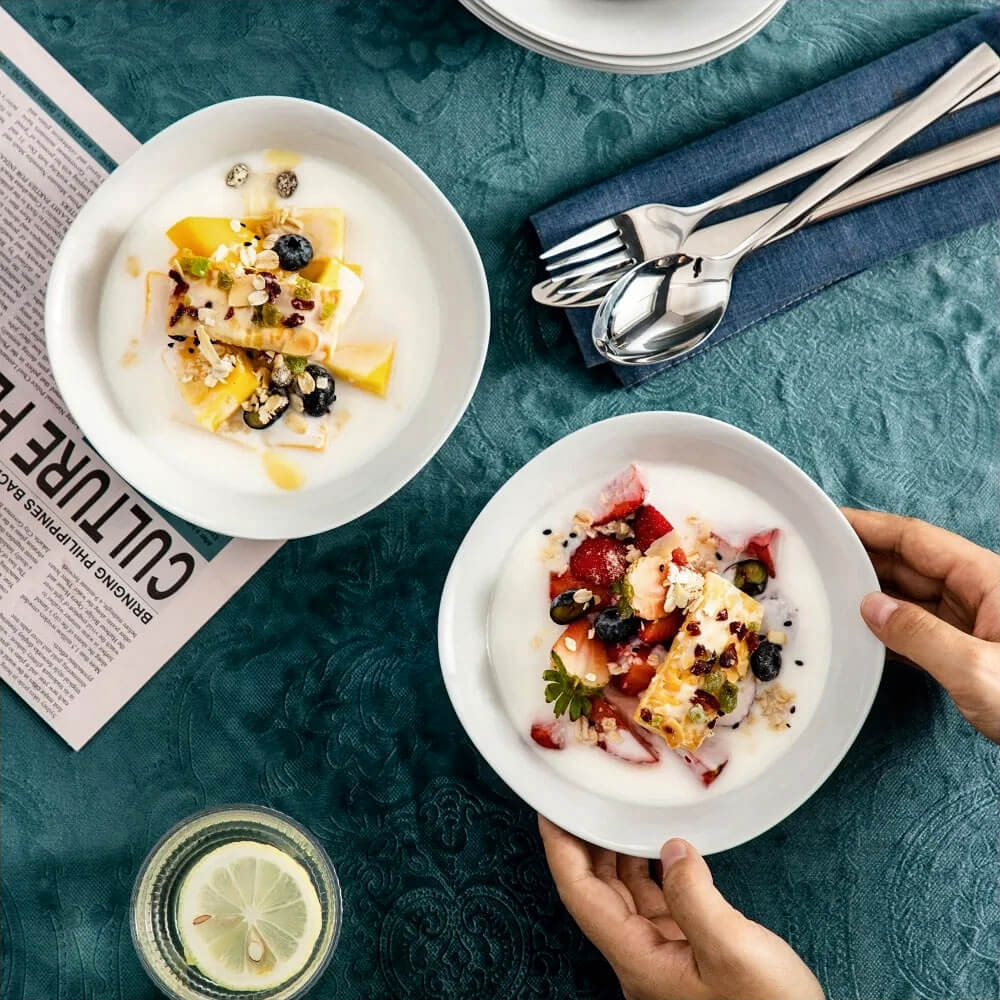 Designed for relaxed entertaining and everyday meals, these porcelain snack bowls are the perfect addition to any table. Ideal for serving everything from cocktail nuts, olives, and gummy bears to pesto sauce and ice cream toppings. The classic white color shows off your food beautifully – and is great for mixing and matching with other dinnerware and serving pieces.
